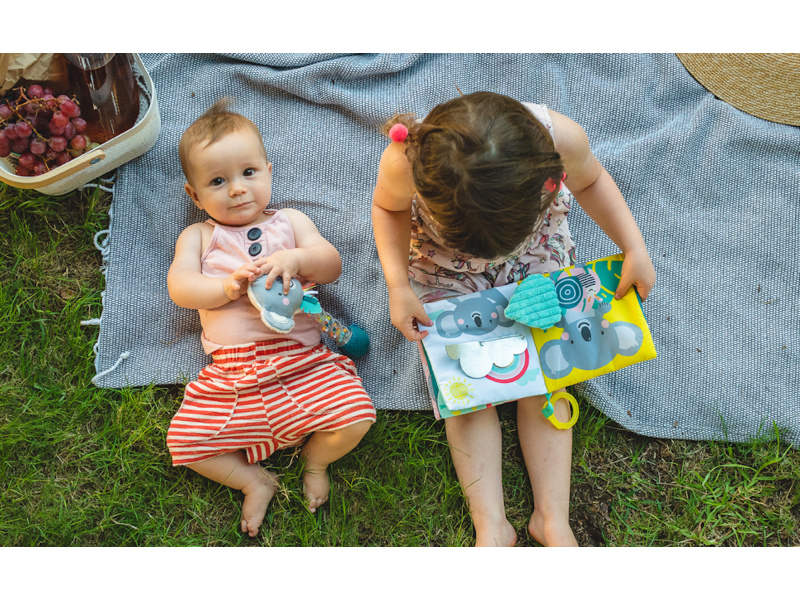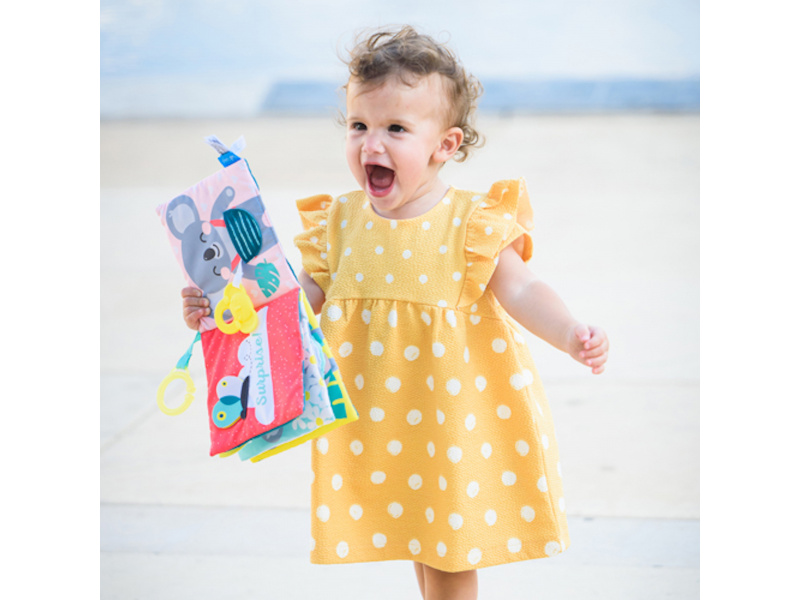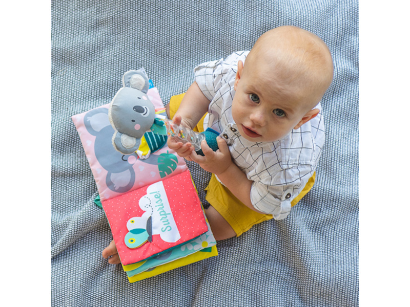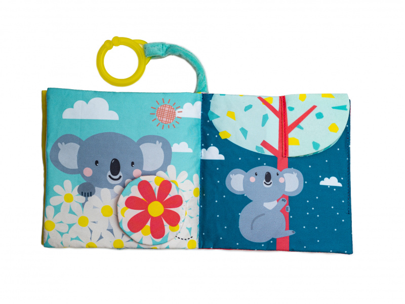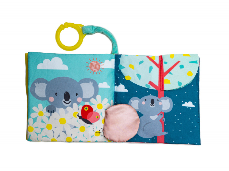 Textilní knížka s krásnými obrázky koaly Joeyho a jeho maminky Kimmi ve vysoce kontrastních barvách pomáhá rozvíjet zrak i ostatní smysly a jemnou motoriku dítěte. Jednotlivé stránky po zmáčknutí jemně šustí a nabízí dítěti různorodé aktivity a textury pro zkoumání. Obrázky koalí rodinky v různých situacích vám usnadní vymýšlení příběhů pro vaše dítě a podporují tak vaši komunikaci s dítětem, důležitou pro jeho další vývoj a rozvoj emoční inteligence. Knížku je možné s pomocí plastového kroužku zavěsit např. na autosedačku nebo kočárek. Rozměry: 15 x 15 cm Vhodné od 6 měsíců.