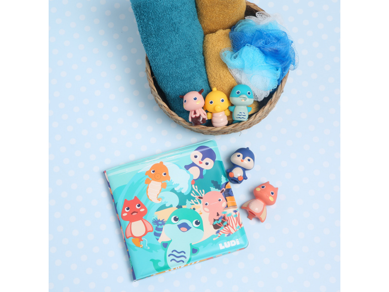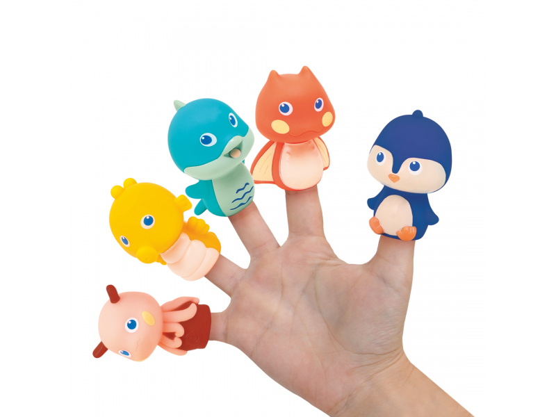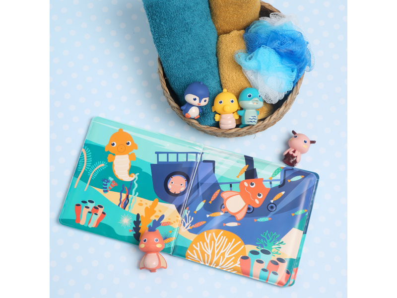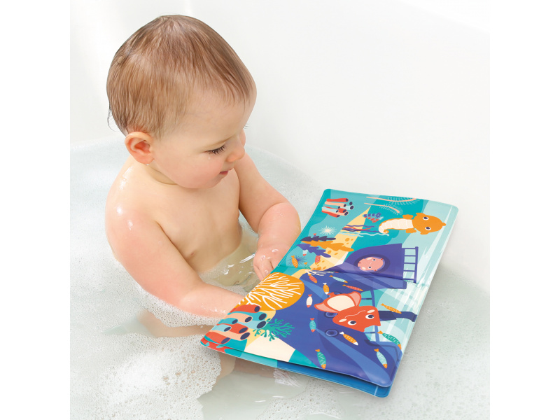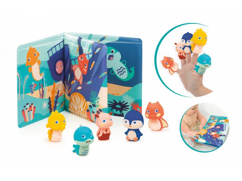 Knížka do koupele se zvířátky, která ožívají v prstech! Tato interaktivní koupací knížka s pěti prstovými maňásky přenese děti pod hladinu moře, kde je čekají barevné ilustrace, veselá zvířátka a neomezený prostor pro fantazii. Ideální do vany, bazénu i mimo vodu – na hraní není nikdy špatný čas! Příběhy, které si děti samy zahrají: Součástí balení je 5 maňásků, odpovídajících zvířátkům v knize Děti si s nimi mohou vymýšlet vlastní příběhy, odehrávat scénky a rozvíjet tak slovní zásobu Maňásci z měkkého materiálu skvěle padnou na dětské prsty a podporují jemnou motoriku a koordinaci Ilustrace zvířat a podmořského světa podněcují zvědavost a rozvoj fantazie Hrátky ve vodě i mimo ni: Materiál PEVA je příjemný, bezpečný a vhodný pro hru ve vodě Maňásci mohou přinést úlevu i při prořezávání zoubků Vše lze snadno opláchnout a nechat oschnout po každém koupání Rozměry knížky: cca 20 × 20 × 2 cm Rozměry maňásků: cca 6 × 4 × 4 cm Složení: PEVA, PVC Údržba: opláchnout čistou vodou a nechat vyschnout Vhodné pro děti od 10 měsíců.