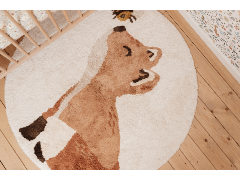 Vytvořte v dětském pokoji útulnou atmosféru s koberečkem od značky Little Dutch! Kobereček s něžným obrázkem lišky svým hravým designem vnese do místnosti příjemnou a útulnou náladu a vašemu dítěti se na něm bude krásně sedět a hrát si. Koberec je vyroben ze 100% organické bavlny s vysokou gramáží a díky protiskluzové latexové vrstvě na spodní straně skvěle drží na místě. Navíc je praktický na údržbu – lze jej snadno vyprat v pračce. Koberec je součástí designové kolekce textilu a doplňků Little Dutch Forest Friends, inspirované životem v lese. Rozměry: 110 x 110 cm