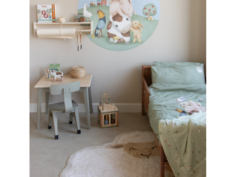 Roztomilý koberec ve tvaru ovečky z kolekce Little Dutch Farma vnese do každého dětského pokoje teplo, měkkost a hravou atmosféru. Je neuvěřitelně hebký na dotek – jako byste chodili po obláčku. Ideální místo pro hraní, čtení i první krůčky. Skvělý pro hraní na zemi, odpočinek nebo jako měkký doplněk vedle postýlky Vyroben ze 100% organické bavlny, příjemné a bezpečné pro dětskou pokožku Protiskluzový latexový podklad zajišťuje stabilitu a brání posouvání koberce po podlaze Roztomilá ovečka dodá pokoji hravost a hřejivý vzhled Vyroben z udržitelných přírodních materiálů bez škodlivých příměsí Koberec je součástí designové kolekce textilu a doplňků Little Dutch Farma. Složení: 100% organická bavlna, spodní část 100% latex Rozměry: 118 × 80,5 cm Možno prát v pračce.