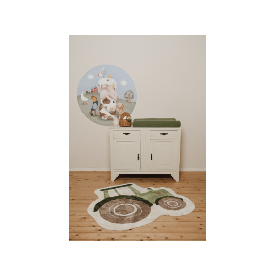 Vytvořte v dětském pokoji útulnou atmosféru s koberečkem od značky Little Dutch! Kobereček ve tvaru traktoru má jemný béžový podklad a motiv zeleno-hnědého traktoru. Jeho hravý design vnese do místnosti příjemnou a útulnou náladu a vašemu dítěti se na něm bude krásně sedět a hrát si. Koberec je vyroben ze 100% organické bavlny s vysokou gramáží a díky protiskluzové latexové vrstvě na spodní straně skvěle drží na místě. Navíc je praktický na údržbu – lze jej snadno vyprat v pračce a usušit v sušičce. Koberec je součástí designové kolekce textilu a doplňků Little Dutch Newborn Naturals. Rozměry: 110 x 100 cm