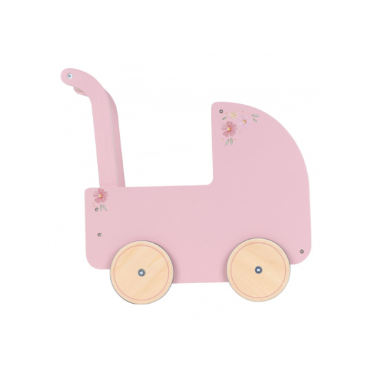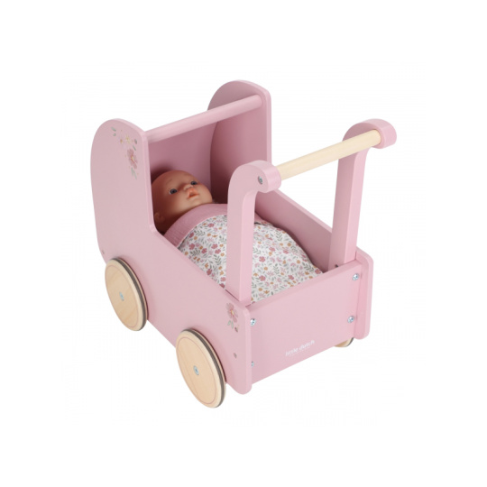 Tento nádherný dřevěný kočárek pro panenky zaujme svým retro designem a něžným květinovým potiskem. Součástí kočárku je měkký polštářek, hřejivá peřinka a pohodlná matrace – vše laděné do jemného květinového designu. Ideální volba pro malé pečovatelky i pečovatele, kteří chtějí své panenky vozit stylově a pohodlně. Kočárek je díky kvalitní dřevěné konstrukci velmi stabilní. Kolečka mají po obvodu gumové kroužky, které zabrání poškrábání podlahy a umožňují nehlučnou jízdu. Nadčasová hračka, která potěší generace dětí a poskytne spoustu radosti při hraní na rodiče. Hračka je součástí kolekce vysoce kvalitních dřevěných hraček Little Dutch, navržených s důrazem na bezpečnost a originální design. Vyrobeno z odolného FSC® certifikovaného dřeva. Rozměry: 41 x 25 x 43,5 cm Vhodné pro děti od 18 měsíců.