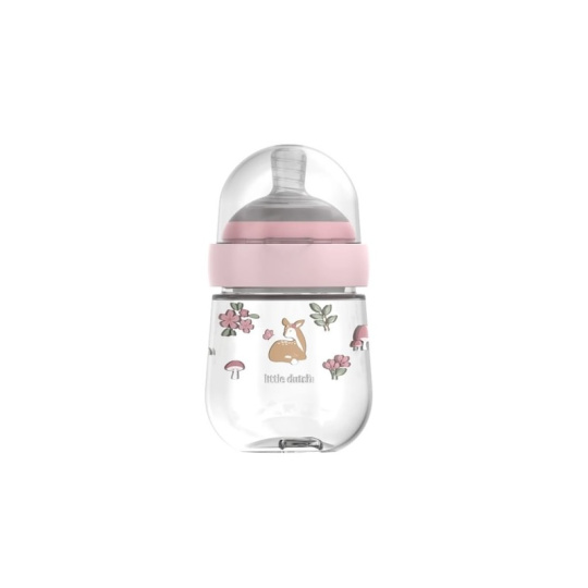 Kojenecká láhev Little Dutch s krásným potiskem a savičkou s antikolikovým ventilem je ideální pro krmení vašeho miminka od narození doma i na cestách. Díky ergonomickému tvaru se lahvička pohodlně drží. Anti-kolikový ventil zajišťuje stálý přísun vzduchu, který pomáhá předcházet křečím a nadýmání tím, že odvádí vzduch od bříška dítěte Savička s pomalým průtokem je vhodná pro děti od narození Spirálový design savičky zabraňuje ucpávání a zajišťuje plynulé sání Přirozený tvar savičky z lékařského silikonu podporuje přirozený způsob krmení a snadný přechod mezi kojením a lahví Široké hrdlo umožňuje snadné plnění i čištění Průhledné víčko slouží k hygienickému uzavření a uchování obsahu Vhodné do myčky nádobí, mikrovlnné trouby, lednice i mrazáku Složení: PP, silikon, bez obsahu BPA Objem: 165 ml Lahvička je součástí designové kolekce hraček a doplňků Little Dutch Fairy Garden, inspirované životem na zahradě. K lahvičce je možné dokoupit náhradní savičky s pomalým, středním a rychlým průtokem. Vhodné pro děti od narození.