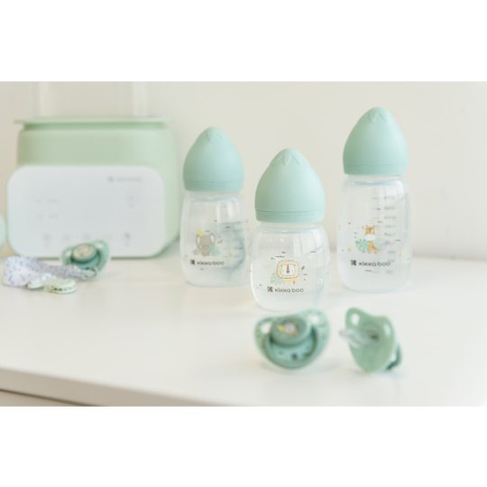 Kojenecká láhev KikkaBoo s krásným potiskem má antikolikovou silikonovou savičku a víčko pro bezpečné uzavření. Ergonomický tvar usnadňuje držení lahvičky, široké hrdlo umožňuje snadné čištění. Složení: polypropylen, silikon Rozměry: 14 x 6,8 x 6,5 cm Objem: 180 ml Vhodné pro děti od 3 měsíců.