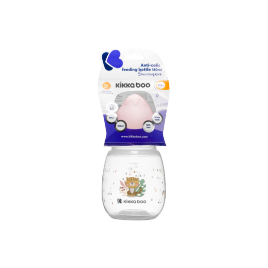 Kojenecká láhev KikkaBoo s krásným potiskem má antikolikovou silikonovou savičku a víčko pro bezpečné uzavření. Ergonomický tvar usnadňuje držení lahvičky, široké hrdlo umožňuje snadné čištění. Složení: polypropylen, silikon Rozměry: 14 x 6,8 x 6,5 cm Objem: 180 ml Vhodné pro děti od 3 měsíců.