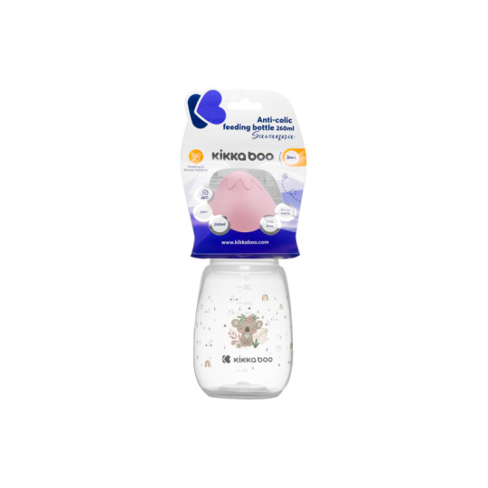 Kojenecká láhev KikkaBoo s krásným potiskem má antikolikovou silikonovou savičku a víčko pro bezpečné uzavření. Ergonomický tvar usnadňuje držení lahvičky, široké hrdlo umožňuje snadné čištění. Složení: polypropylen, silikon Rozměry: 15,9 x 7,3 x 7,3 cm Objem: 260 ml Vhodné pro děti od 3 měsíců.