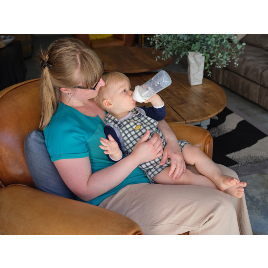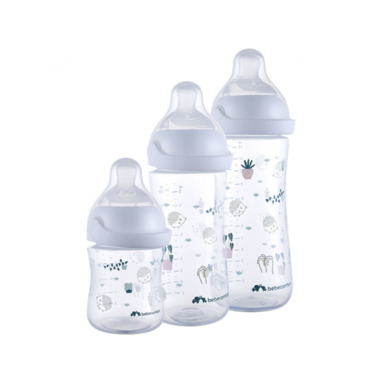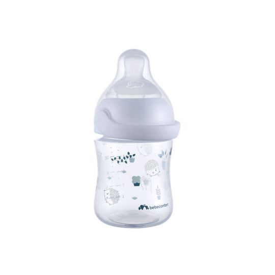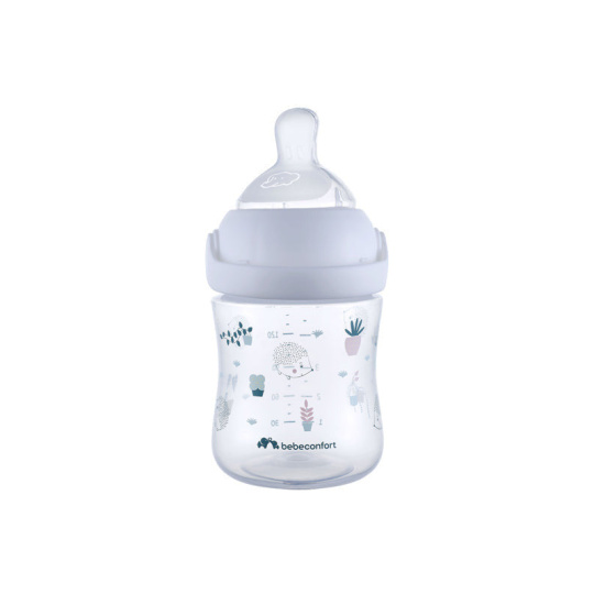 Kojenecká lahvička Bebeconfort Emotion Physio s unikátní silikonovou savičkou fyziologického tvaru je zárukou, že dítě téměř nepociťuje rozdíl mezi kojením a krmením z lahvičky. Lahvička je antikoliková, opatřená dvojitým ventilačním systémem na okraji savičky, který citlivě zabezpečí únik vzduchu z láhve, tím umožní plynulé sání tekutiny a zároveň snižuje riziko břišní koliky. Originální způsob uzavírání láhve Easy Clip je zárukou bezpečného uzavření láhve bez rizika vytečení. Místo šroubování se objímka se savičkou na láhev snadno a rychle zacvakne. Ergonomický tvar lahvičky umožňuje snadné držení během krmení. Víčko chrání čistotu savičky během přenášení či uskladnění. Široké hrdlo usnadňuje plnění i čištění. Lahvička je dodávána se savičkou s pomalým průtokem. Náhradní savičky se prodávají samostatně. Neobsahuje bisfenol A. Vhodné pro děti od narození.