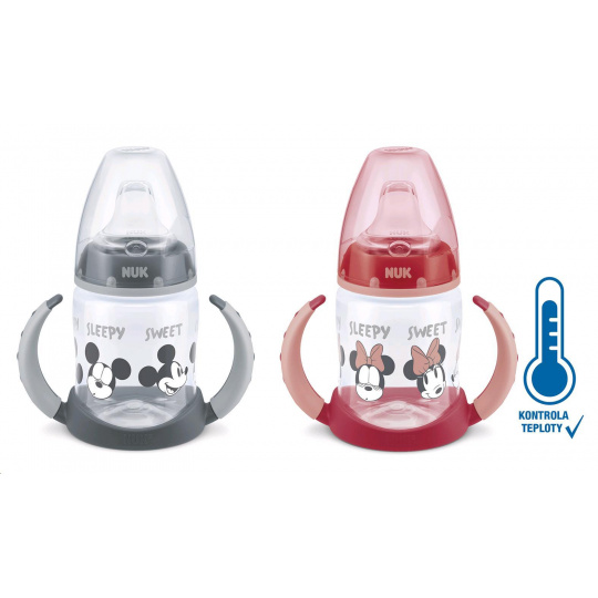 Kojenecká láhev na učení NUK Disney Mickey s kontrolou teploty 150 ml šedá
