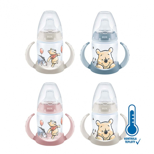 Kojenecká láhev na učení NUK Medvídek Pú s kontrolou teploty 150 ml šedá