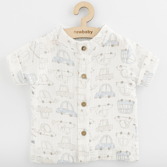 Stylová 2-dílná mušelínová soupravička české značky New Baby My Cars pro miminka. Soupravička obsahuje košili a kraťasy. Košile s krátkým rukávem má zapínání na knoflíčky. Šmrncovní kraťásky mají v pase širší gumičku a falešné zapínání na knoflíčky. Krásný, vzdušní komplet na letní dny pro chlapečky. Soupravička je lehounká a velmi příjemná při nošení. Mušelín je jedna z nejčistších, nejjednodušších a nejjemnějších tkanin na světě. Jemně tkaný prodyšný materiál je tak dokonalý, že si jej zamilují děti po celém světě. Lehká struktura umožňuje mušelínu „dýchat“ a zajišťuje dostatečnou cirkulaci vzduchu, čímž snižuje riziko přehřátí. Tato vlastnost pomáhá udržet Vaše dítě v pohodlí, bezpečí a rodiče v klidu. Mušelín je velmi odolný a to tak, že bez problémů zvládá opakované praní a postupem času je lehčí a jemnější. Složení: 100% bavlna. OEKO-TEX STANDARD 100.