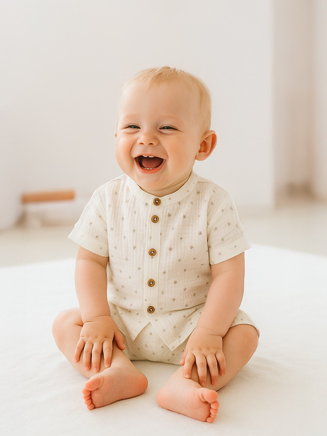 Stylová 2-dílná mušelínová soupravička české značky New Baby Arthur pro miminka. Soupravička obsahuje košili a kraťasy. Košile s krátkým rukávem má zapínání na knoflíčky. Šmrncovní kraťásky mají v pase širší gumičku a falešné zapínání na knoflíčky. Krásný, vzdušní komplet na letní dny pro chlapečky. Soupravička je lehounká a velmi příjemná při nošení. Mušelín je jedna z nejčistších, nejjednodušších a nejjemnějších tkanin na světě. Jemně tkaný prodyšný materiál je tak dokonalý, že si jej zamilují děti po celém světě. Lehká struktura umožňuje mušelínu „dýchat“ a zajišťuje dostatečnou cirkulaci vzduchu, čímž snižuje riziko přehřátí. Tato vlastnost pomáhá udržet Vaše dítě v pohodlí, bezpečí a rodiče v klidu. Mušelín je velmi odolný a to tak, že bez problémů zvládá opakované praní a postupem času je lehčí a jemnější. Složení: 100% bavlna. OEKO-TEX STANDARD 100.