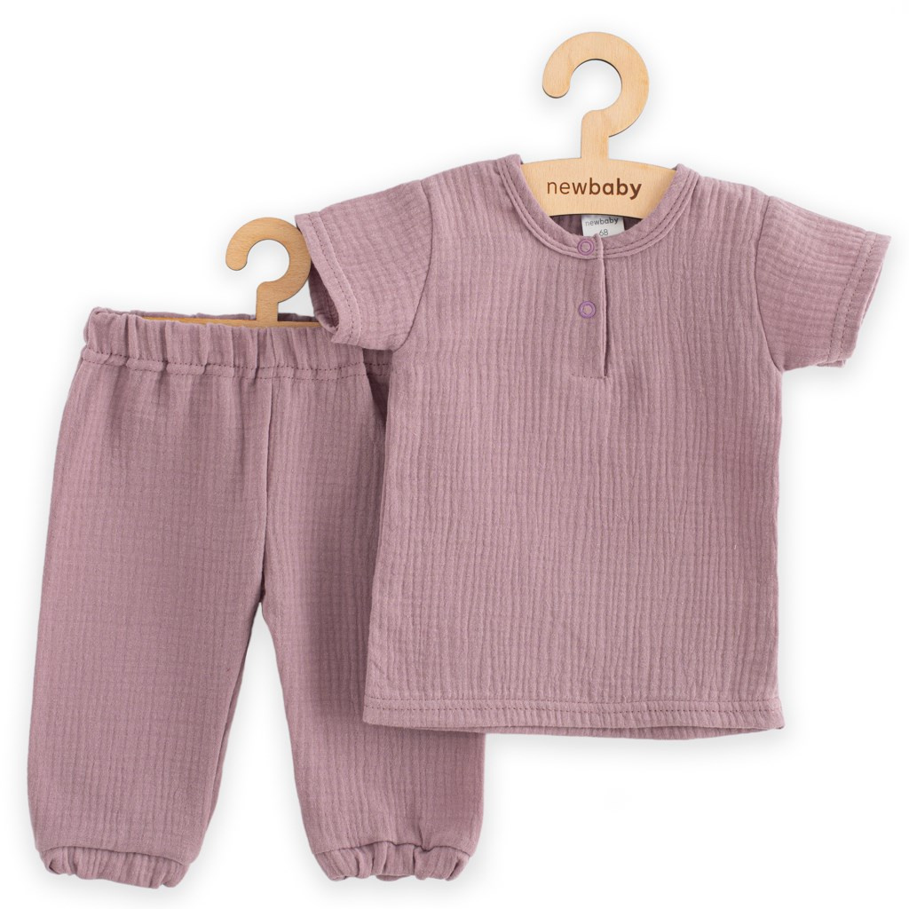 Kojenecká mušelínová souprava tričko a kalhoty New Baby lavender