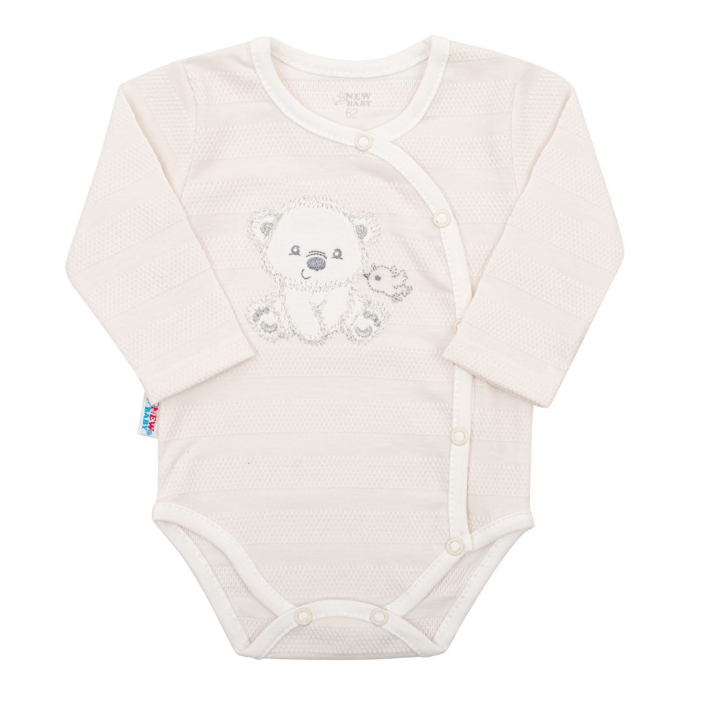 4-dílná soupravička české značky New Baby Sweet Bear pro miminka. Soupravička je vyrobena z kvalitního materiálu, který je vhodný pro miminka a je vhodná nejen do porodnice. Obsahuje celorozepínací body s dlouhým rukávkem, dupačky, kabátek a čepičku. Celorozepínací body zdobí vyšitý obrázek medvídka a ptáčka. Dupačky zdobí roztomilý obrázek medvídka a ptáčka. Zapínání na cvočky na ramínkách a mezi nožičkami. Kabátek je jednobarevný s krásným lemováním okolo ručiček. Zapínání je na cvočky po celé délce. Čepička je krásně tvarovaná na ouška a zavazuje se na tkaničky. Soupravička je v praktické Eko krabičce. Celá soupravička má nový neobyčejný design s atraktivním vzorem látky. Složení: 100% bavlna.
