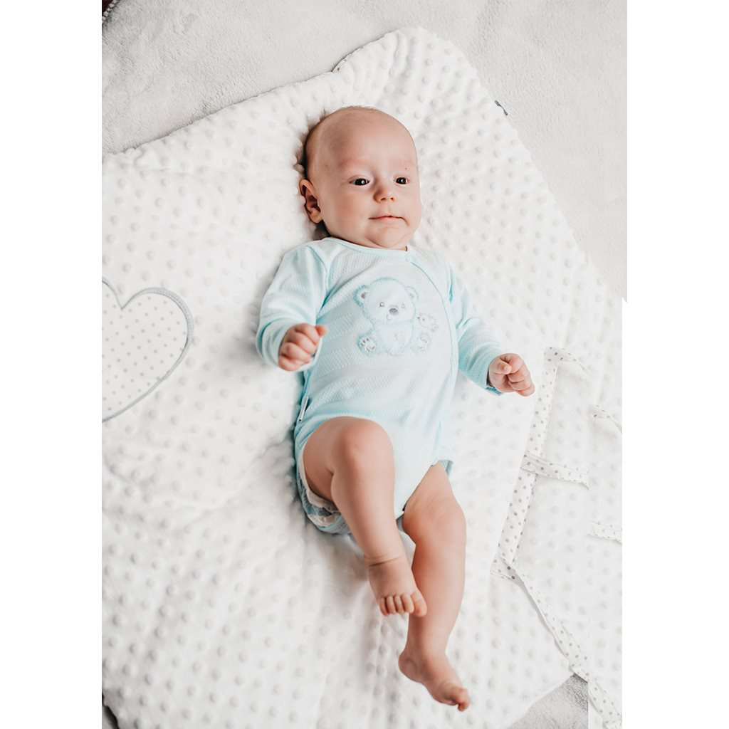 4-dílná soupravička české značky New Baby Sweet Bear pro miminka. Soupravička je vyrobena z kvalitního materiálu, který je vhodný pro miminka a je vhodná nejen do porodnice. Obsahuje celorozepínací body s dlouhým rukávkem, dupačky, kabátek a čepičku. Celorozepínací body zdobí vyšitý obrázek medvídka a ptáčka. Dupačky zdobí roztomilý obrázek medvídka a ptáčka. Zapínání na cvočky na ramínkách a mezi nožičkami. Kabátek je jednobarevný s krásným lemováním okolo ručiček. Zapínání je na cvočky po celé délce. Čepička je krásně tvarovaná na ouška a zavazuje se na tkaničky. Soupravička je v praktické Eko krabičce. Celá soupravička má nový neobyčejný design s atraktivním vzorem látky. Složení: 100% bavlna.