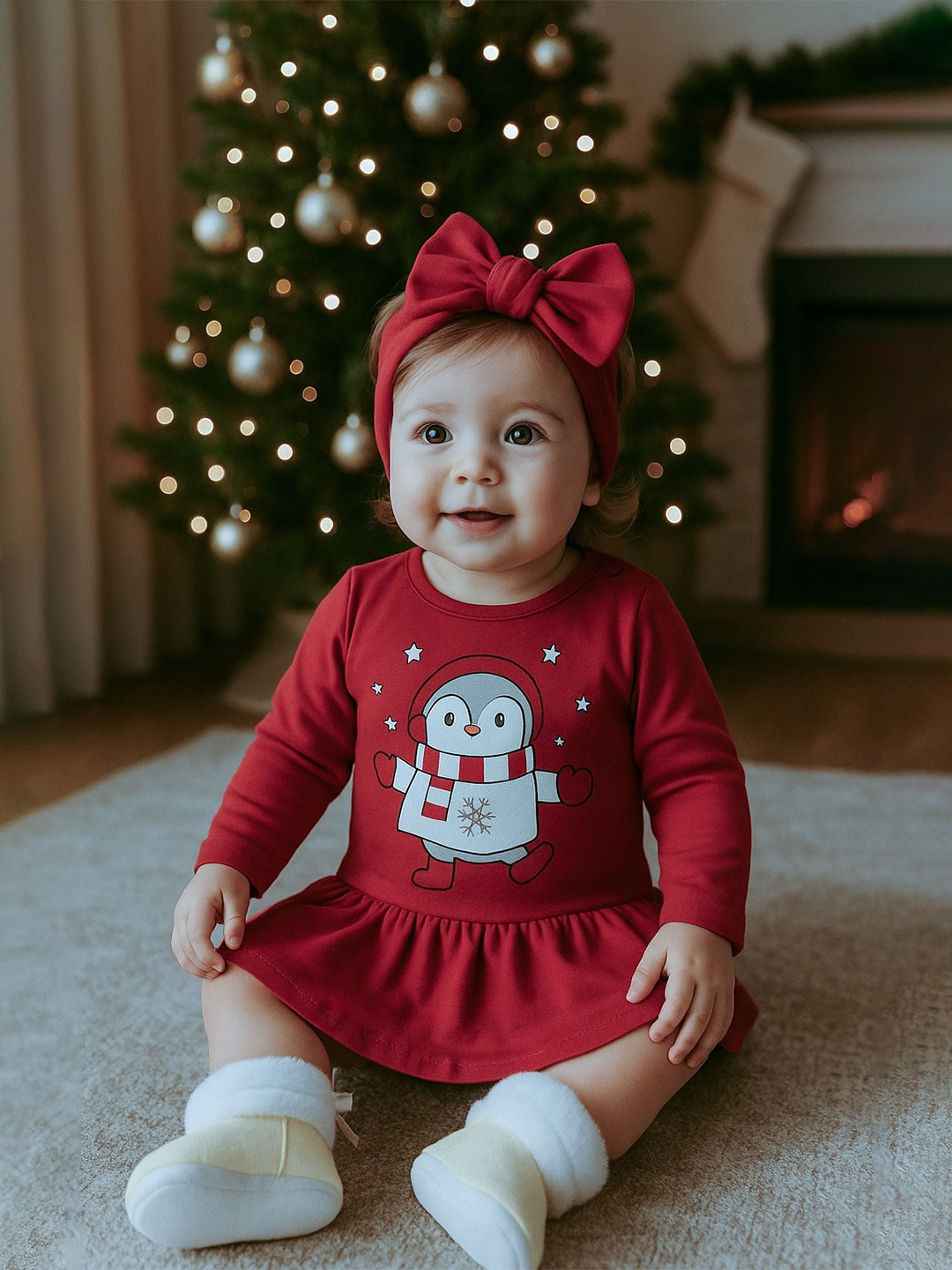 Kojenecké bavlněné šatičky s čelenkou New Baby Winter Penguin