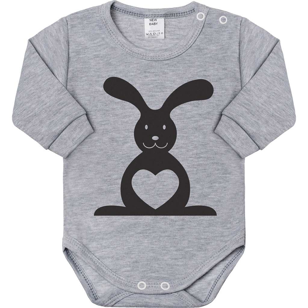 Originální bavlněné kojenecké body s dlouhým rukávem New Baby Zvířátko Zajíček, s roztomilým obrázkem zvířátka. Přední stranu body zdobí zvířátko a na zadní straně je vyobrazen buď ocásek, žihadélko nebo křidélka. Vždy dle typu daného zvířátka. Body je v krásných zářivých barvách a rukávky jsou ukončeny širším pružným lemem, který netlačí na ručičku miminka. Barvy použité k potisku jsou certifikovány a vhodné pro miminka. Je vyrobeno z příjemného a kvalitního materiálu, ve kterém se bude Vaše miminko cítit příjemně. Body má zapínání na cvočky na ramínku a mezi nožičkami, což usnadňuje oblékání a přebalování. Dopřejte Vašemu miminku vyniknout v originálním body a bude určitě nepřehlédnutelné. Složení: 100% bavlna.