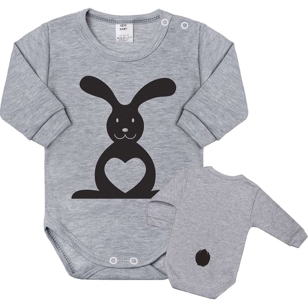 Originální bavlněné kojenecké body s dlouhým rukávem New Baby Zvířátko Zajíček, s roztomilým obrázkem zvířátka. Přední stranu body zdobí zvířátko a na zadní straně je vyobrazen buď ocásek, žihadélko nebo křidélka. Vždy dle typu daného zvířátka. Body je v krásných zářivých barvách a rukávky jsou ukončeny širším pružným lemem, který netlačí na ručičku miminka. Barvy použité k potisku jsou certifikovány a vhodné pro miminka. Je vyrobeno z příjemného a kvalitního materiálu, ve kterém se bude Vaše miminko cítit příjemně. Body má zapínání na cvočky na ramínku a mezi nožičkami, což usnadňuje oblékání a přebalování. Dopřejte Vašemu miminku vyniknout v originálním body a bude určitě nepřehlédnutelné. Složení: 100% bavlna.