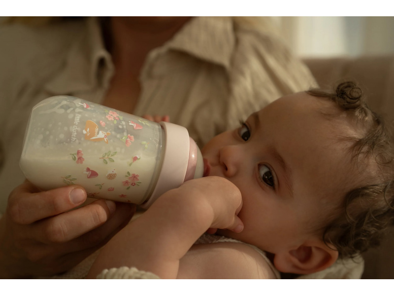 Sada kojeneckých lahví Little Dutch s krásným potiskem a savičkou s antikolikovým ventilem obsahuje dvě láhve (165 ml a 240 ml) se savičkou s pomalým průtokem, vhodné pro děti od narození, a dvě savičky se středním průtokem, vhodné pro děti od 3 měsíců. Kojenecká láhev Little Dutch je ideální pro krmení vašeho miminka od narození doma i na cestách. Díky ergonomickému tvaru se lahvička pohodlně drží. Anti-kolikový ventil zajišťuje stálý přísun vzduchu, který pomáhá předcházet křečím a nadýmání tím, že odvádí vzduch od bříška dítěte Savička s pomalým průtokem je vhodná pro děti od narození, savička se středním průtokem je vhodná pro děti od 3 měsíců Spirálový design savičky zabraňuje ucpávání a zajišťuje plynulé sání Přirozený tvar savičky z lékařského silikonu podporuje přirozený způsob krmení a snadný přechod mezi kojením a lahví Široké hrdlo umožňuje snadné plnění i čištění Průhledné víčko slouží k hygienickému uzavření a uchování obsahu Vhodné do myčky nádobí, mikrovlnné trouby, lednice i mrazáku Složení: PP, silikon, bez obsahu BPA Objem: 165 ml, 240 ml Lahvičky jsou součástí designové kolekce hraček a doplňků Little Dutch Fairy Garden, inspirované životem na zahradě. K lahvičkám je možné dokoupit náhradní savičky s pomalým, středním a rychlým průtokem. Vhodné pro děti od narození.