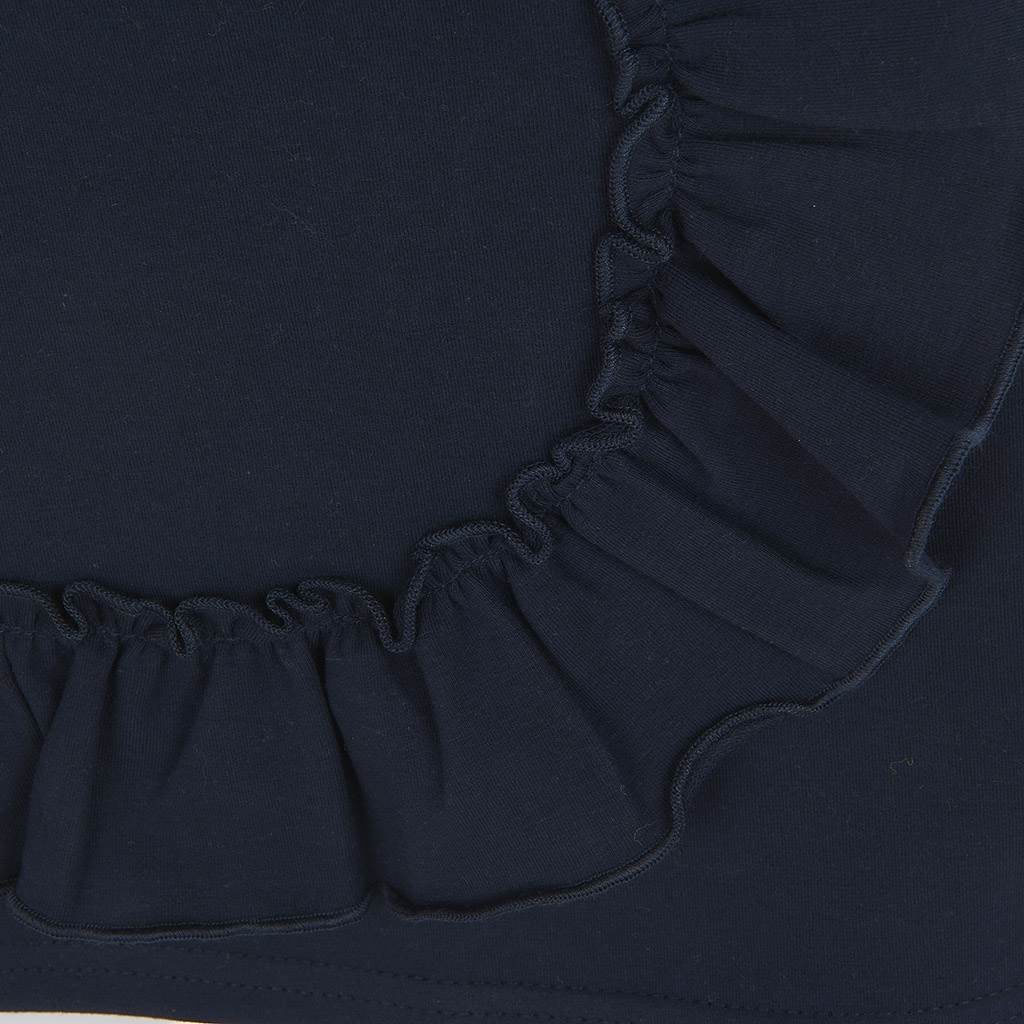 2-dílna soupravička pro holčičky české značky New Baby Butterflies. Soupravička se skládá z trička a sukýnky. Tričko s krátkými nařasenými rukávy je zdobeno obrázkem motýlků. Zapínání na ramínku na cvočky ulehčí oblékání přes hlavičku miminka. Tmavě modrou sukýnku zdobí krásný volánek, který dodává sukýnce ten správný šmrnc. V pase je širší guma, která netlačí na bříško miminka. Složení: tričko: 100% bavlna, sukýnka: 95% bavlna, 5% elastan.