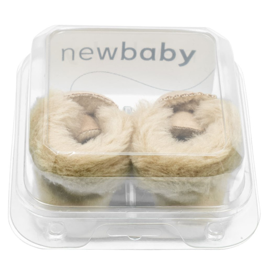 Kojenecké zimní capáčky New Baby pro miminka. Krásné, teplé semiškové capáčky s moderním vzhledem a zapínáním na suchý zip. Vnitřní část je vystlaná rounovou pleteninou-100% polyester. Capáčky přiléhají k nožičce a mají široký vnitřek, což umožňuje volný pohyb prstů a svalů. Výrobek není určen k chůzi. Jsou velmi lehké s tenkou syntetickou podrážkou. Složení: ekologický semiš - 100% polyester, rounová pletenina-100% polyester. Podrážka: syntetický materiál PVC bez BPA. Délka vnitřní stélky 10 cm. Určeno pro děti 0-3 měsíců. Dodáváné v praktické krabičce. Upozornění: pod textilní vložkou se někdy nachází papírová vložka, která drží tvar capáčky. Před prvním použitím odstraňte tuto papírovou vložku.
