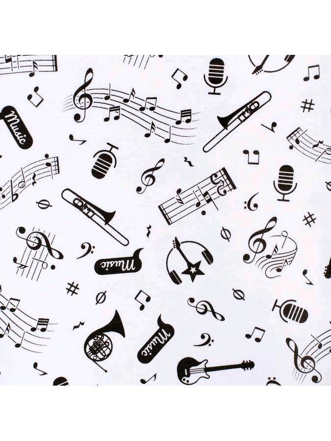 Bavlněný kojenecký overal New Baby Music pro miminka. Dětský overálek má rukávky a spodní část celopotištěnou notičkami a hudebními nástroji. Vrchní část je zdobena roztomilým obrázkem notiček a nápisem Music. Zapínání na cvočky po celé délce a mezi nožičkami. Klademe důraz na kvalitu a proto se díky příjemnému, měkkému a kvalitnímu materiálu, bude Vaše miminko cítit velmi příjemně. Náš overálek je vhodný pro kluky i holčičky. Složení: 100% bavlna. Rozměry: obvod kolem hrudníku cca 54 cm, celková délka cca 65 cm, délka od rozkroku cca 21 cm, délka rukávú cca 25 cm.