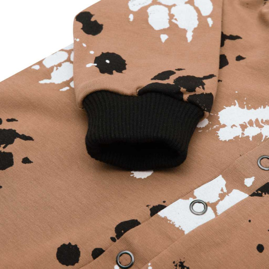Nápaditý bavlněný kojenecký overal české značky New Baby Paw. Overal je celopotištěný dětským vzorem. Je vyroben z kvalitního bavlněného materiálu s elastanem a bavlněnou podšívkou. Materiál je hladký a příjemný na dotek. Praktické zapínání na cvočky po celé délce velmi usnadní oblékání a přebalování. Overal má praktickou kapuci s oušky, širší pružné lemy na rukách a nohavičkách a celá vnitřní strana je zateplená bavlněnou podšívkou, která zvyšuje komfort nošení. Miminko se bude cítit v overálku velmi pohodlně a příjemně. Složení: 95% bavlna, 5% elastan, podšívka- 95% bavlna, 5% elastan. Vhodné na jaro a na podzim.