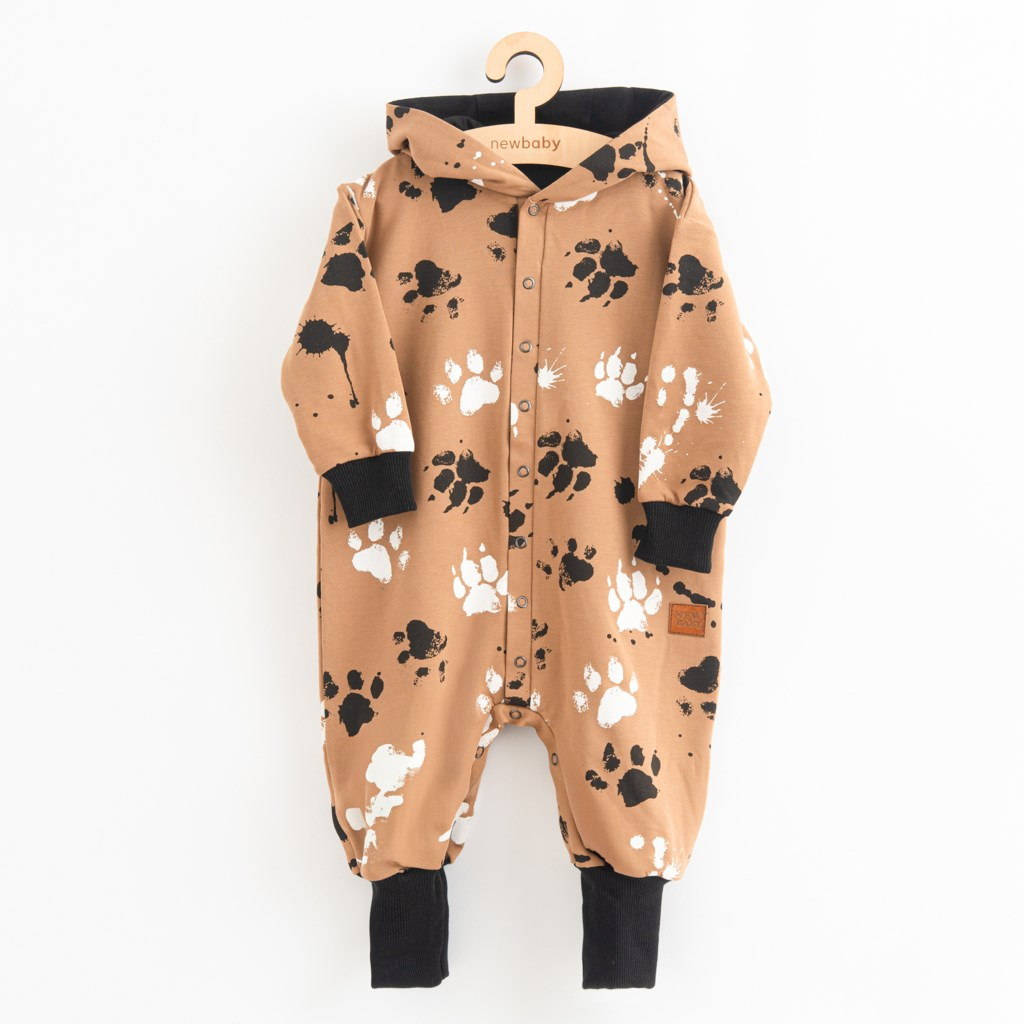 Nápaditý bavlněný kojenecký overal české značky New Baby Paw. Overal je celopotištěný dětským vzorem. Je vyroben z kvalitního bavlněného materiálu s elastanem a bavlněnou podšívkou. Materiál je hladký a příjemný na dotek. Praktické zapínání na cvočky po celé délce velmi usnadní oblékání a přebalování. Overal má praktickou kapuci s oušky, širší pružné lemy na rukách a nohavičkách a celá vnitřní strana je zateplená bavlněnou podšívkou, která zvyšuje komfort nošení. Miminko se bude cítit v overálku velmi pohodlně a příjemně. Složení: 95% bavlna, 5% elastan, podšívka- 95% bavlna, 5% elastan. Vhodné na jaro a na podzim.