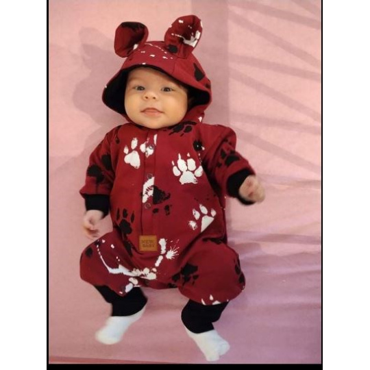 Nápaditý bavlněný kojenecký overal české značky New Baby Paw. Overal je celopotištěný dětským vzorem. Je vyroben z kvalitního bavlněného materiálu s elastanem a bavlněnou podšívkou. Materiál je hladký a příjemný na dotek. Praktické zapínání na cvočky po celé délce velmi usnadní oblékání a přebalování. Overal má praktickou kapuci s oušky, širší pružné lemy na rukách a nohavičkách a celá vnitřní strana je zateplená bavlněnou podšívkou, která zvyšuje komfort nošení. Miminko se bude cítit v overálku velmi pohodlně a příjemně. Složení: 95% bavlna, 5% elastan, podšívka- 95% bavlna, 5% elastan. Vhodné na jaro a na podzim.