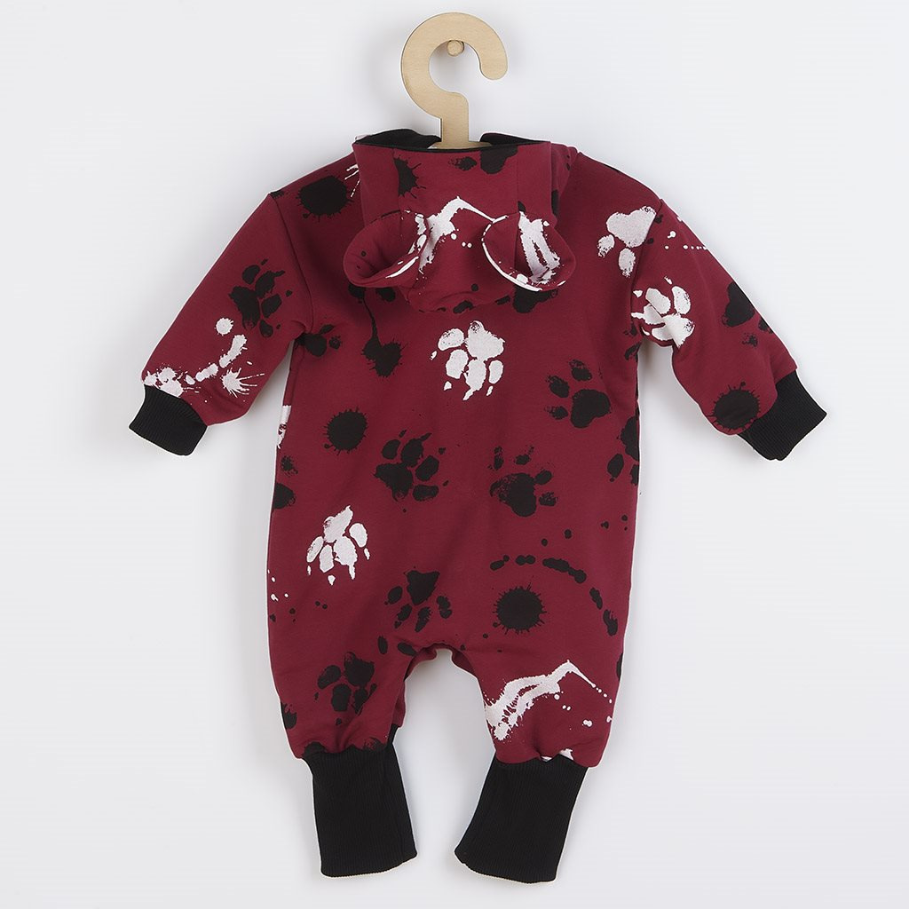 Kojenecký bavlněný overal s kapucí a oušky New Baby tlapka tmavě růžový
