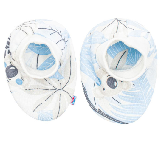 Krásný a praktický bavlněný set české značky New Baby Lovely. Set se skládá z capáček a rukaviček. Capáčky a rukavičky jsou zdobeny roztomilým vzorem a mají stahovací manžetky. Složení: 100% bavlna.