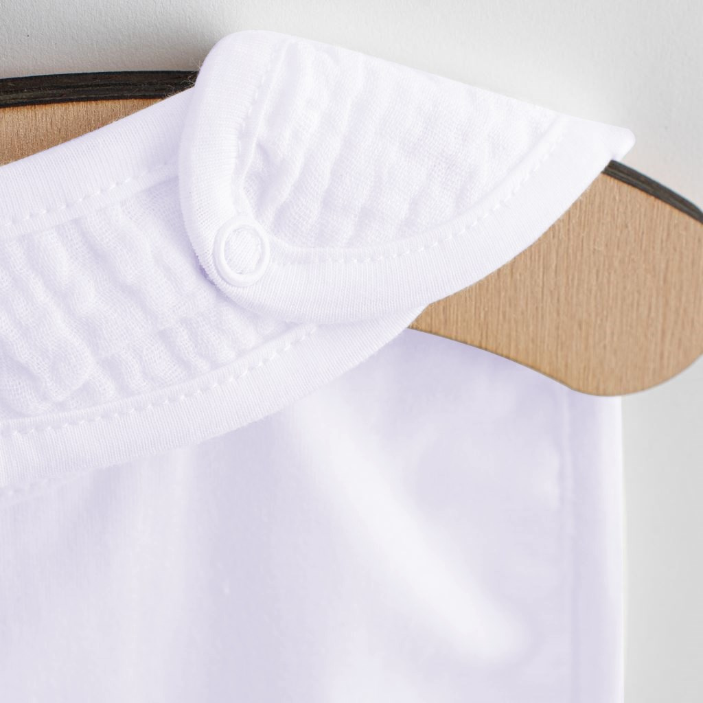 Krásný mušelínový dětský bryndáček české značky New Baby Elizabeth. Bryndák lze zapnout do 2 velikostí pomocí cvočků. Mušelín je jedna z nejčistších, nejjednodušších a nejjemnějších tkanin na světě. Jemně tkaný prodyšný materiál je tak dokonalý, že si jej zamilují děti po celém světě. Lehká struktura umožňuje mušelínu „dýchat“ a zajišťuje dostatečnou cirkulaci vzduchu, čímž snižuje riziko přehřátí. Tato vlastnost pomáhá udržet Vaše dítě v pohodlí, bezpečí a rodiče v klidu. Mušelín je velmi odolný a to tak, že bez problémů zvládá opakované praní a postupem času je lehčí a jemnější. Rozměr: 25x30 cm. Složení: 100% bavlna.