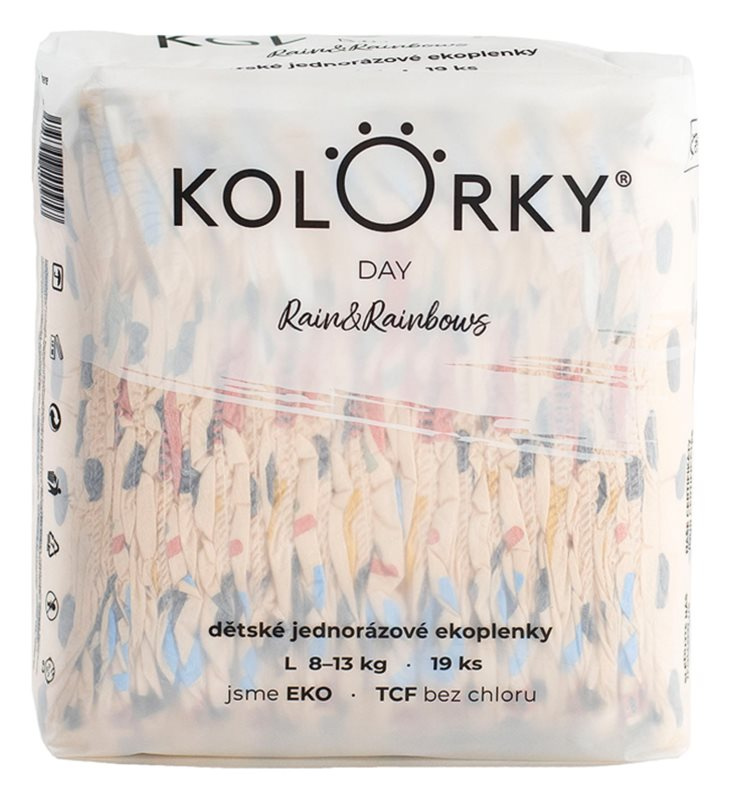 KOLORKY DAY Pleny jednorázové eko, déšť&duhy L (8-13 kg) 19 ks