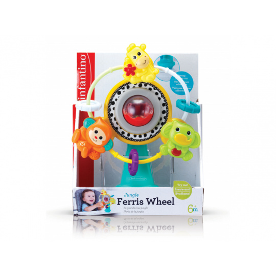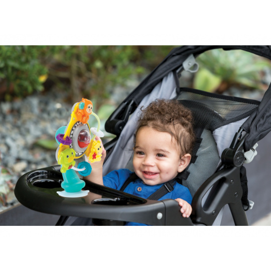 Kolotoč s přísavkou můžete připevnit např. na pultík jídlení žídličky. Kolotoč i jednotlivá zvířátka se dají rukou roztočit. Při roztočení kolotoč i korálky v průhledném míčku chrastí. Hračka podporuje rozvoj smyslů a motoriky dítěte. Vhodné pro děti od 6 měsíců.