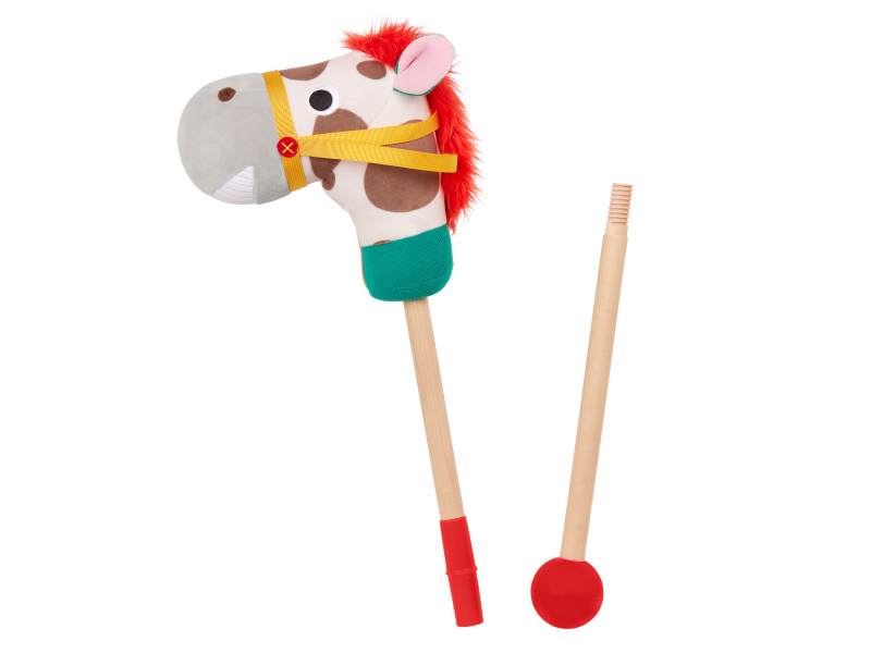Hurá za dobrodružstvím s roztomilým koníkem Pony Pal od B. Toys! Tento plyšový koník na tyči je moderní verzí klasické hračky "hobby horse" a zaručí dětem spoustu aktivní zábavy. Hebká hlava z různých senzorických materiálů stimuluje hmat, stisknutím tlačítka se navíc ozvou realistické zvuky klapotu kopyt a koňského řehtání. Děti si mohou nasednout, pevně chytit otěže a rozběhnout se za dobrodružstvím. Díky pogumované spodní části nezanechá tyč škrábance na podlaze. Hračka rozvíjí hrubou motoriku a koordinaci pohybů. Vyměnitelné baterie 2xAAA jsou součástí. Vhodné pro děti od 2 let.