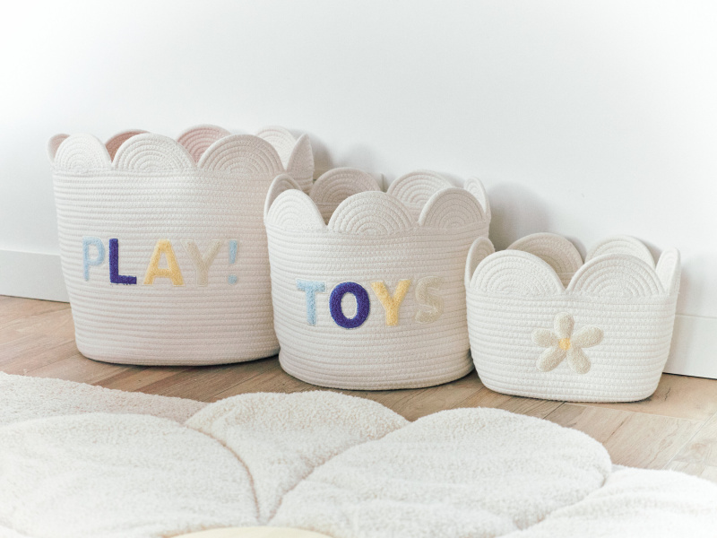 Krásný úložný košík je vhodný pro ukládání drobných hraček, oblečení apod. Košík z příjemného textilního materiálu se stane něžnou dekorací v dětském pokoji. Rozměry: 35 x 35 x 35 cm Materiál: 80% polyester, 20% bavlna