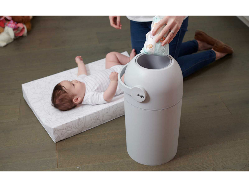 Patentovaný koš na pleny Magic poskytuje ochranu před nepříjemnými pachy a bakteriemi v dětském pokoji nebo kdekoli ve vašem interiéru. Použitou plenu snadno vložíte do koše bez jakéhokoli kontaktu s plenkami, které již v koši jsou. Otočením držadla plena propadne do koše a jeho otočením zpátky je koš opět připraven pro další použití. To vše jednou rukou, takže druhou můžete držet vaše miminko. Speciální systém těsnění udržuje zápach uvnitř koše. Koš o objemu 40 l pojme cca 25 plen (počet plen záleží na jejich velikosti), takže vám jeho kapacita vystačí na několik dní. I vyprázdnění koše je navrženo tak, aby se neuvolnil zápach v koši nahromaděný. Koš v moderním, minimalistickém designu dokonale zapadne do každého interiéru. Když dítě vyroste, můžete koš i nadále používat na odpadky. Koš je vybaven i dětskou pojistkou. Použití koše je velmi ekonomické, protože nevyžaduje nákup speciálních náplní. Koš je určen pro použití s běžnými sáčky na odpadky. Pro maximální ochranu před zápachem doporučujeme použití originálních sáčků navržených do košů na pleny Magic. Tyto sáčky jsou vyrobeny z extra silného, 3-vrstvého materiálu, který brání protékání. Balení koše obsahuje roli s 15 ks sáčků zdarma. Jedna role vystačí na cca 375 plen (počet plen záleží na jejich velikosti). Materiál: PP Rozměry: 52 x 26 x 26 cm