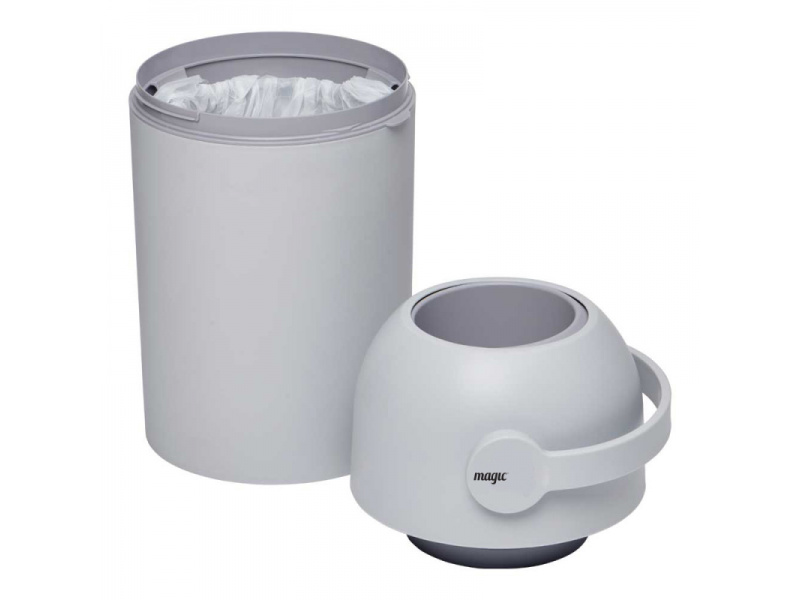 Patentovaný koš na pleny Magic poskytuje ochranu před nepříjemnými pachy a bakteriemi v dětském pokoji nebo kdekoli ve vašem interiéru. Použitou plenu snadno vložíte do koše bez jakéhokoli kontaktu s plenkami, které již v koši jsou. Otočením držadla plena propadne do koše a jeho otočením zpátky je koš opět připraven pro další použití. To vše jednou rukou, takže druhou můžete držet vaše miminko. Speciální systém těsnění udržuje zápach uvnitř koše. Koš o objemu 40 l pojme cca 25 plen (počet plen záleží na jejich velikosti), takže vám jeho kapacita vystačí na několik dní. I vyprázdnění koše je navrženo tak, aby se neuvolnil zápach v koši nahromaděný. Koš v moderním, minimalistickém designu dokonale zapadne do každého interiéru. Když dítě vyroste, můžete koš i nadále používat na odpadky. Koš je vybaven i dětskou pojistkou. Použití koše je velmi ekonomické, protože nevyžaduje nákup speciálních náplní. Koš je určen pro použití s běžnými sáčky na odpadky. Pro maximální ochranu před zápachem doporučujeme použití originálních sáčků navržených do košů na pleny Magic. Tyto sáčky jsou vyrobeny z extra silného, 3-vrstvého materiálu, který brání protékání. Balení koše obsahuje roli s 15 ks sáčků zdarma. Jedna role vystačí na cca 375 plen (počet plen záleží na jejich velikosti). Materiál: PP Rozměry: 52 x 26 x 26 cm
