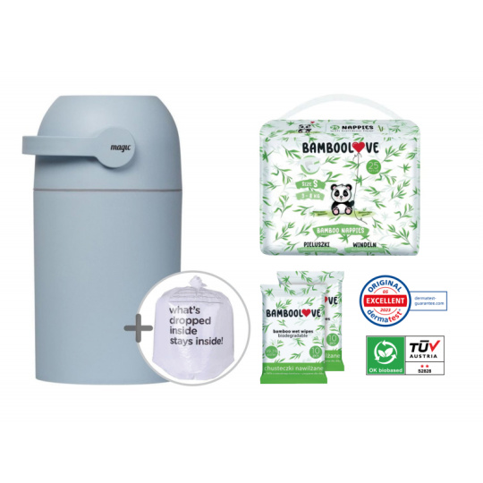 Patentovaný koš na pleny Magic poskytuje ochranu před nepříjemnými pachy a bakteriemi v dětském pokoji nebo kdekoli ve vašem interiéru. Použitou plenu snadno vložíte do koše bez jakéhokoli kontaktu s plenkami, které již v koši jsou. Otočením držadla plena propadne do koše a jeho otočením zpátky je koš opět připraven pro další použití. To vše jednou rukou, takže druhou můžete držet vaše miminko. Speciální systém těsnění udržuje zápach uvnitř koše. Koš o objemu 40 l pojme cca 25 plen (počet plen záleží na jejich velikosti), takže vám jeho kapacita vystačí na několik dní. I vyprázdnění koše je navrženo tak, aby se neuvolnil zápach v koši nahromaděný. Koš v moderním, minimalistickém designu dokonale zapadne do každého interiéru. Když dítě vyroste, můžete koš i nadále používat na odpadky. Koš je vybaven i dětskou pojistkou. Použití koše je velmi ekonomické, protože nevyžaduje nákup speciálních náplní. Koš je určen pro použití s běžnými sáčky na odpadky. Pro maximální ochranu před zápachem doporučujeme použití originálních sáčků navržených do košů na pleny Magic. Tyto sáčky jsou vyrobeny z extra silného, 3-vrstvého materiálu, který brání protékání. Balení koše obsahuje roli s 15 ks sáčků zdarma. Jedna role vystačí na cca 375 plen (počet plen záleží na jejich velikosti). Materiál: PP Rozměry: 52 x 26 x 26 cm