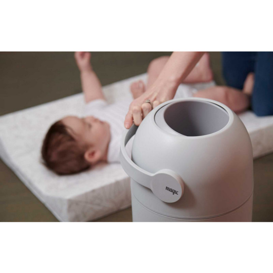 Patentovaný koš na pleny Magic poskytuje ochranu před nepříjemnými pachy a bakteriemi v dětském pokoji nebo kdekoli ve vašem interiéru. Použitou plenu snadno vložíte do koše bez jakéhokoli kontaktu s plenkami, které již v koši jsou. Otočením držadla plena propadne do koše a jeho otočením zpátky je koš opět připraven pro další použití. To vše jednou rukou, takže druhou můžete držet vaše miminko. Speciální systém těsnění udržuje zápach uvnitř koše. Koš o objemu 40 l pojme cca 25 plen (počet plen záleží na jejich velikosti), takže vám jeho kapacita vystačí na několik dní. I vyprázdnění koše je navrženo tak, aby se neuvolnil zápach v koši nahromaděný. Koš v moderním, minimalistickém designu dokonale zapadne do každého interiéru. Když dítě vyroste, můžete koš i nadále používat na odpadky. Koš je vybaven i dětskou pojistkou. Použití koše je velmi ekonomické, protože nevyžaduje nákup speciálních náplní. Koš je určen pro použití s běžnými sáčky na odpadky. Pro maximální ochranu před zápachem doporučujeme použití originálních sáčků navržených do košů na pleny Magic. Tyto sáčky jsou vyrobeny z extra silného, 3-vrstvého materiálu, který brání protékání. Balení koše obsahuje roli s 15 ks sáčků zdarma. Jedna role vystačí na cca 375 plen (počet plen záleží na jejich velikosti). Materiál: PP Rozměry: 52 x 26 x 26 cm