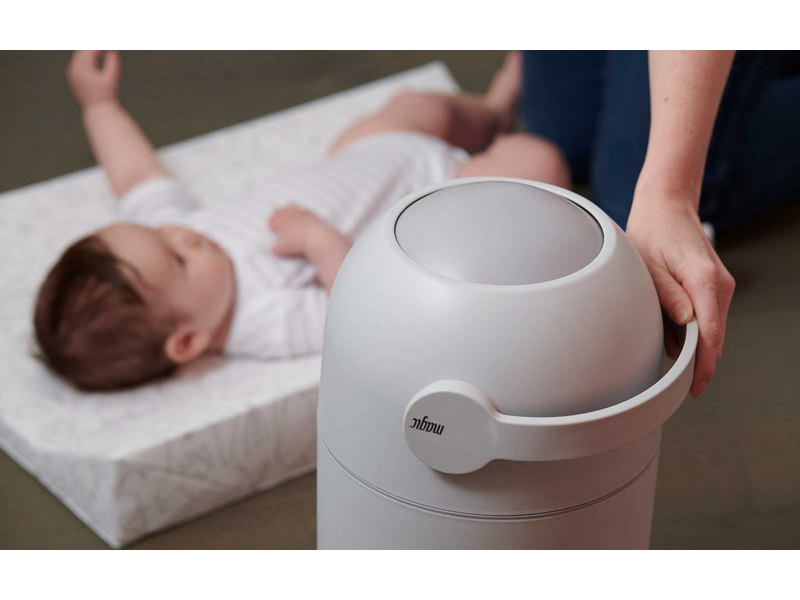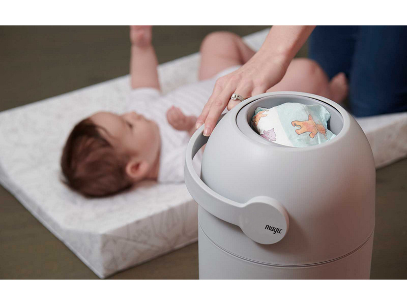 Patentovaný koš na pleny Magic poskytuje ochranu před nepříjemnými pachy a bakteriemi v dětském pokoji nebo kdekoli ve vašem interiéru. Použitou plenu snadno vložíte do koše bez jakéhokoli kontaktu s plenkami, které již v koši jsou. Otočením držadla plena propadne do koše a jeho otočením zpátky je koš opět připraven pro další použití. To vše jednou rukou, takže druhou můžete držet vaše miminko. Speciální systém těsnění udržuje zápach uvnitř koše. Koš o objemu 40 l pojme cca 25 plen (počet plen záleží na jejich velikosti), takže vám jeho kapacita vystačí na několik dní. I vyprázdnění koše je navrženo tak, aby se neuvolnil zápach v koši nahromaděný. Koš v moderním, minimalistickém designu dokonale zapadne do každého interiéru. Když dítě vyroste, můžete koš i nadále používat na odpadky. Koš je vybaven i dětskou pojistkou. Použití koše je velmi ekonomické, protože nevyžaduje nákup speciálních náplní. Koš je určen pro použití s běžnými sáčky na odpadky. Pro maximální ochranu před zápachem doporučujeme použití originálních sáčků navržených do košů na pleny Magic. Tyto sáčky jsou vyrobeny z extra silného, 3-vrstvého materiálu, který brání protékání. Balení koše obsahuje roli s 15 ks sáčků zdarma. Jedna role vystačí na cca 375 plen (počet plen záleží na jejich velikosti). Materiál: PP Rozměry: 52 x 26 x 26 cm