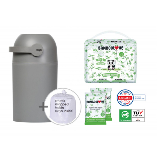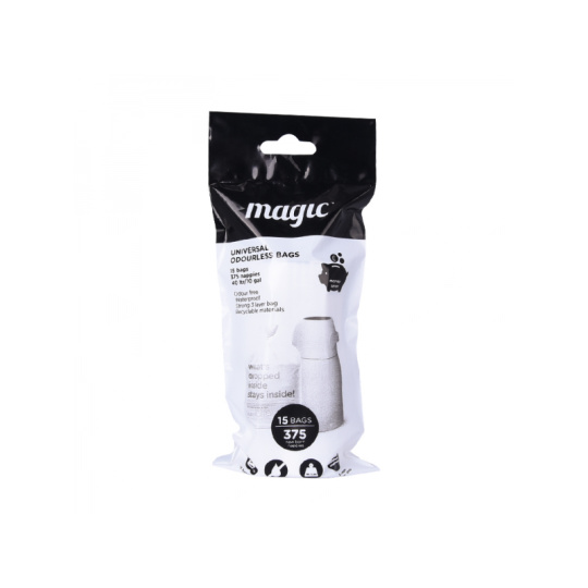 Patentovaný koš na pleny Magic poskytuje ochranu před nepříjemnými pachy a bakteriemi v dětském pokoji nebo kdekoli ve vašem interiéru. Použitou plenu snadno vložíte do koše bez jakéhokoli kontaktu s plenkami, které již v koši jsou. Otočením držadla plena propadne do koše a jeho otočením zpátky je koš opět připraven pro další použití. To vše jednou rukou, takže druhou můžete držet vaše miminko. Speciální systém těsnění udržuje zápach uvnitř koše. Koš o objemu 40 l pojme cca 25 plen (počet plen záleží na jejich velikosti), takže vám jeho kapacita vystačí na několik dní. I vyprázdnění koše je navrženo tak, aby se neuvolnil zápach v koši nahromaděný. Koš v moderním, minimalistickém designu dokonale zapadne do každého interiéru. Když dítě vyroste, můžete koš i nadále používat na odpadky. Koš je vybaven i dětskou pojistkou. Použití koše je velmi ekonomické, protože nevyžaduje nákup speciálních náplní. Koš je určen pro použití s běžnými sáčky na odpadky. Pro maximální ochranu před zápachem doporučujeme použití originálních sáčků navržených do košů na pleny Magic. Tyto sáčky jsou vyrobeny z extra silného, 3-vrstvého materiálu, který brání protékání. Balení koše obsahuje roli s 15 ks sáčků zdarma. Jedna role vystačí na cca 375 plen (počet plen záleží na jejich velikosti). Materiál: PP Rozměry: 52 x 26 cm