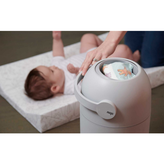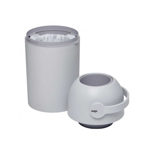 Patentovaný koš na pleny Magic poskytuje ochranu před nepříjemnými pachy a bakteriemi v dětském pokoji nebo kdekoli ve vašem interiéru. Použitou plenu snadno vložíte do koše bez jakéhokoli kontaktu s plenkami, které již v koši jsou. Otočením držadla plena propadne do koše a jeho otočením zpátky je koš opět připraven pro další použití. To vše jednou rukou, takže druhou můžete držet vaše miminko. Speciální systém těsnění udržuje zápach uvnitř koše. Koš o objemu 40 l pojme cca 25 plen (počet plen záleží na jejich velikosti), takže vám jeho kapacita vystačí na několik dní. I vyprázdnění koše je navrženo tak, aby se neuvolnil zápach v koši nahromaděný. Koš v moderním, minimalistickém designu dokonale zapadne do každého interiéru. Když dítě vyroste, můžete koš i nadále používat na odpadky. Koš je vybaven i dětskou pojistkou. Použití koše je velmi ekonomické, protože nevyžaduje nákup speciálních náplní. Koš je určen pro použití s běžnými sáčky na odpadky. Pro maximální ochranu před zápachem doporučujeme použití originálních sáčků navržených do košů na pleny Magic. Tyto sáčky jsou vyrobeny z extra silného, 3-vrstvého materiálu, který brání protékání. Balení koše obsahuje roli s 15 ks sáčků zdarma. Jedna role vystačí na cca 375 plen (počet plen záleží na jejich velikosti). Materiál: PP Rozměry: 52 x 26 x 26 cm