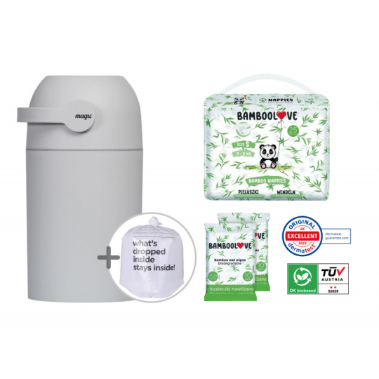 Patentovaný koš na pleny Magic poskytuje ochranu před nepříjemnými pachy a bakteriemi v dětském pokoji nebo kdekoli ve vašem interiéru. Použitou plenu snadno vložíte do koše bez jakéhokoli kontaktu s plenkami, které již v koši jsou. Otočením držadla plena propadne do koše a jeho otočením zpátky je koš opět připraven pro další použití. To vše jednou rukou, takže druhou můžete držet vaše miminko. Speciální systém těsnění udržuje zápach uvnitř koše. Koš o objemu 40 l pojme cca 25 plen (počet plen záleží na jejich velikosti), takže vám jeho kapacita vystačí na několik dní. I vyprázdnění koše je navrženo tak, aby se neuvolnil zápach v koši nahromaděný. Koš v moderním, minimalistickém designu dokonale zapadne do každého interiéru. Když dítě vyroste, můžete koš i nadále používat na odpadky. Koš je vybaven i dětskou pojistkou. Použití koše je velmi ekonomické, protože nevyžaduje nákup speciálních náplní. Koš je určen pro použití s běžnými sáčky na odpadky. Pro maximální ochranu před zápachem doporučujeme použití originálních sáčků navržených do košů na pleny Magic. Tyto sáčky jsou vyrobeny z extra silného, 3-vrstvého materiálu, který brání protékání. Balení koše obsahuje roli s 15 ks sáčků zdarma. Jedna role vystačí na cca 375 plen (počet plen záleží na jejich velikosti). Materiál: PP Rozměry: 52 x 26 x 26 cm