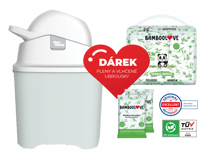 Unikátní koš na pleny DiaperChamp ONE poskytuje díky patentovanému vzduchotěsnému systému ochranu před nepříjemnými pachy a bakteriemi v dětském pokoji nebo kdekoli ve vašem interiéru. Použitou plenu stačí vložit do otvoru ve víku koše, otočením držadla plena propadne do koše a jeho otočením zpátky je koš opět připraven pro další použití. To vše jednou rukou, takže druhou můžete držet vaše miminko. Speciální systém těsnění udržuje zápach uvnitř koše. Použití koše DiaperChamp ONE je velmi ekonomické, protože nepotřebuje žádné speciální výměnné kazety. Koš je určen pro použití s běžnými sáčky na odpadky o objemu 60 l. Koš pojme cca 30 plen (počet plen záleží na jejich velikosti), takže vám jeho kapacita vystačí na několik dní. Vyprázdnění koše je velmi jednoduché a rychlé. Koš je vybaven dětskou pojistkou. Rozměry: 52 x 25 x 36 cm