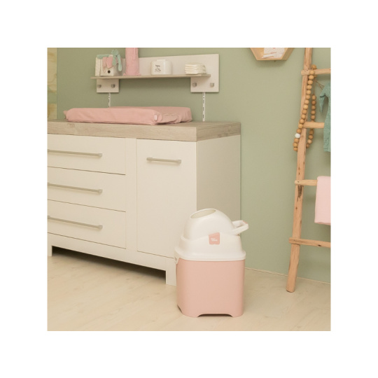 Unikátní koš na pleny DiaperChamp ONE poskytuje díky patentovanému vzduchotěsnému systému ochranu před nepříjemnými pachy a bakteriemi v dětském pokoji nebo kdekoli ve vašem interiéru. Použitou plenu stačí vložit do otvoru ve víku koše, otočením držadla plena propadne do koše a jeho otočením zpátky je koš opět připraven pro další použití. To vše jednou rukou, takže druhou můžete držet vaše miminko. Speciální systém těsnění udržuje zápach uvnitř koše. Použití koše DiaperChamp ONE je velmi ekonomické, protože nepotřebuje žádné speciální výměnné kazety. Koš je určen pro použití s běžnými sáčky na odpadky o objemu 60 l. Koš pojme cca 30 plen (počet plen záleží na jejich velikosti), takže vám jeho kapacita vystačí na několik dní. Vyprázdnění koše je velmi jednoduché a rychlé. Koš je vybaven dětskou pojistkou. Rozměry: 52 x 25 x 36 cm