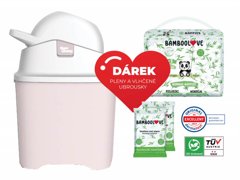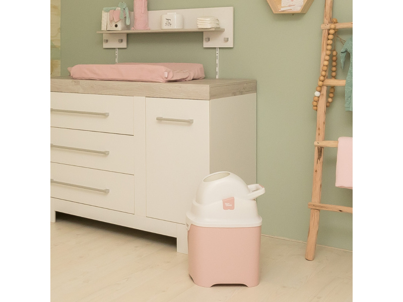 Unikátní koš na pleny DiaperChamp ONE poskytuje díky patentovanému vzduchotěsnému systému ochranu před nepříjemnými pachy a bakteriemi v dětském pokoji nebo kdekoli ve vašem interiéru. Použitou plenu stačí vložit do otvoru ve víku koše, otočením držadla plena propadne do koše a jeho otočením zpátky je koš opět připraven pro další použití. To vše jednou rukou, takže druhou můžete držet vaše miminko. Speciální systém těsnění udržuje zápach uvnitř koše. Použití koše DiaperChamp ONE je velmi ekonomické, protože nepotřebuje žádné speciální výměnné kazety. Koš je určen pro použití s běžnými sáčky na odpadky o objemu 60 l. Koš pojme cca 30 plen (počet plen záleží na jejich velikosti), takže vám jeho kapacita vystačí na několik dní. Vyprázdnění koše je velmi jednoduché a rychlé. Koš je vybaven dětskou pojistkou. Rozměry: 52 x 25 x 36 cm