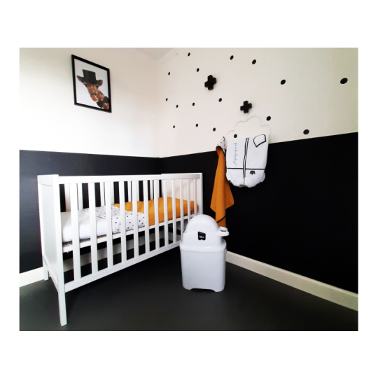Unikátní koš na pleny DiaperChamp ONE poskytuje díky patentovanému vzduchotěsnému systému ochranu před nepříjemnými pachy a bakteriemi v dětském pokoji nebo kdekoli ve vašem interiéru. Použitou plenu stačí vložit do otvoru ve víku koše, otočením držadla plena propadne do koše a jeho otočením zpátky je koš opět připraven pro další použití. To vše jednou rukou, takže druhou můžete držet vaše miminko. Speciální systém těsnění udržuje zápach uvnitř koše. Použití koše DiaperChamp ONE je velmi ekonomické, protože nepotřebuje žádné speciální výměnné kazety. Koš je určen pro použití s běžnými sáčky na odpadky o objemu 60 l. Koš pojme cca 30 plen (počet plen záleží na jejich velikosti), takže vám jeho kapacita vystačí na několik dní. Vyprázdnění koše je velmi jednoduché a rychlé. Koš je vybaven dětskou pojistkou. Rozměry: 52 x 25 x 36 cm