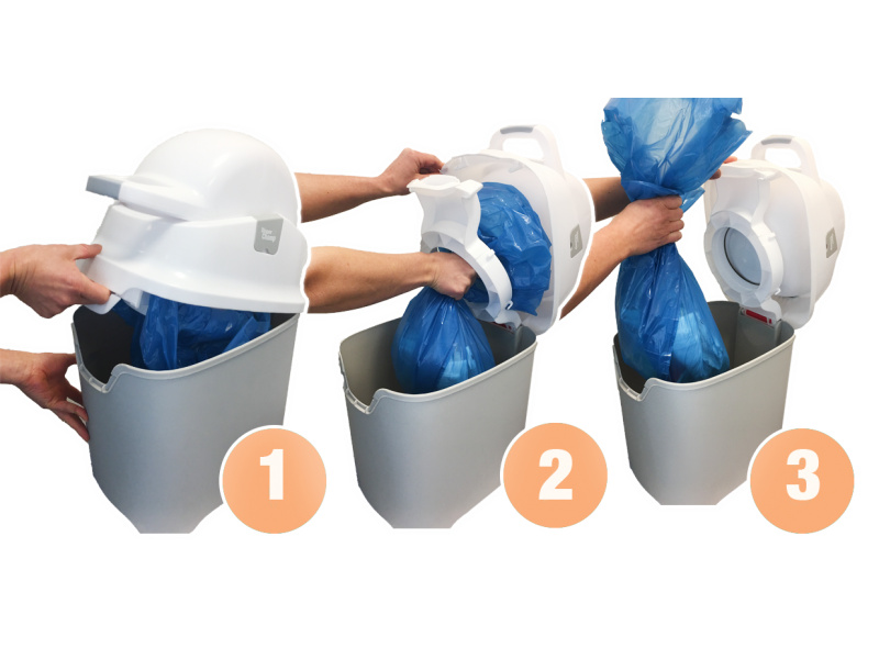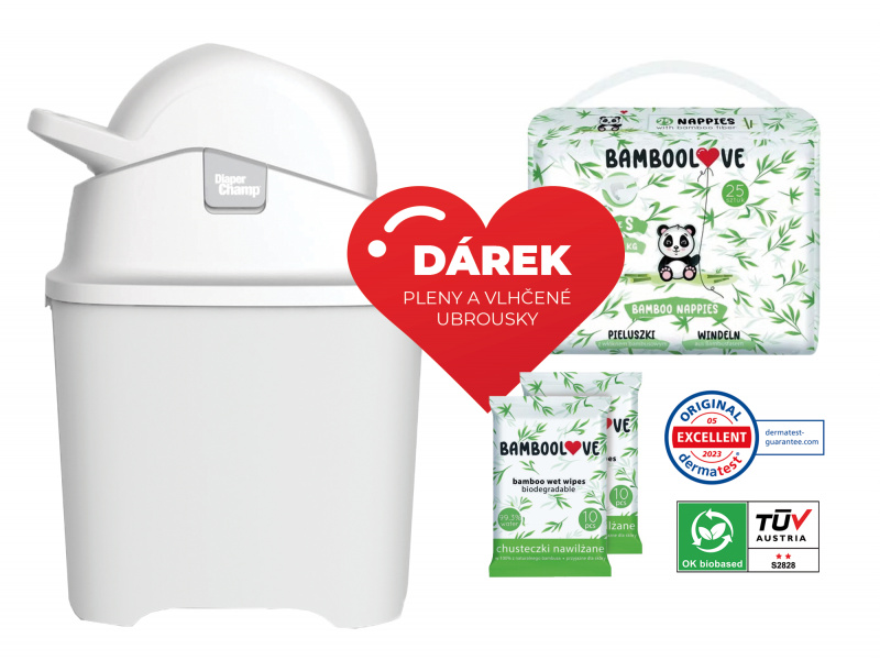 Unikátní koš na pleny DiaperChamp ONE poskytuje díky patentovanému vzduchotěsnému systému ochranu před nepříjemnými pachy a bakteriemi v dětském pokoji nebo kdekoli ve vašem interiéru. Použitou plenu stačí vložit do otvoru ve víku koše, otočením držadla plena propadne do koše a jeho otočením zpátky je koš opět připraven pro další použití. To vše jednou rukou, takže druhou můžete držet vaše miminko. Speciální systém těsnění udržuje zápach uvnitř koše. Použití koše DiaperChamp ONE je velmi ekonomické, protože nepotřebuje žádné speciální výměnné kazety. Koš je určen pro použití s běžnými sáčky na odpadky o objemu 60 l. Koš pojme cca 30 plen (počet plen záleží na jejich velikosti), takže vám jeho kapacita vystačí na několik dní. Vyprázdnění koše je velmi jednoduché a rychlé. Koš je vybaven dětskou pojistkou. Rozměry: 52 x 25 x 36 cm
