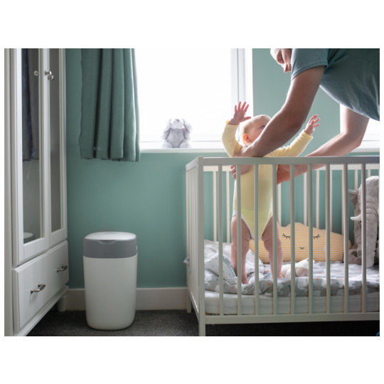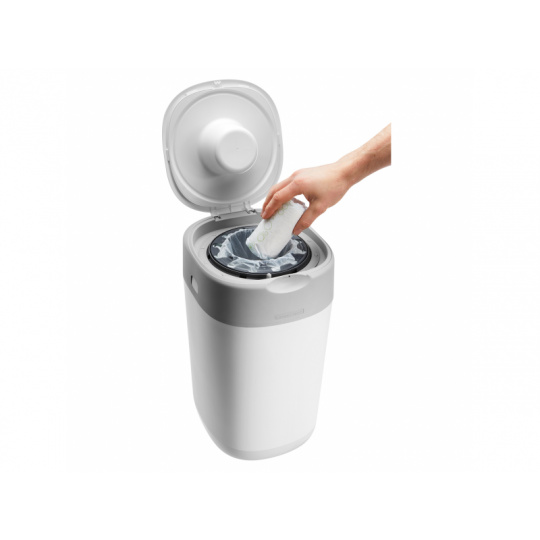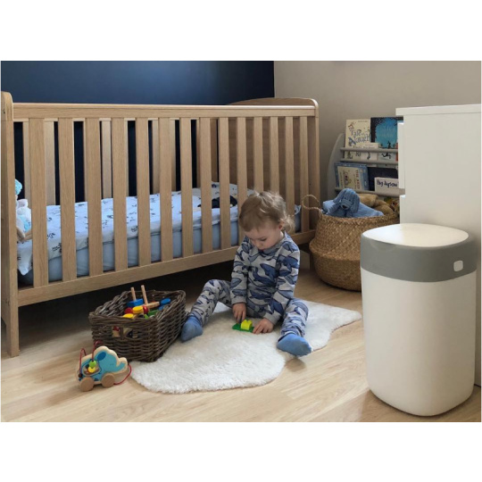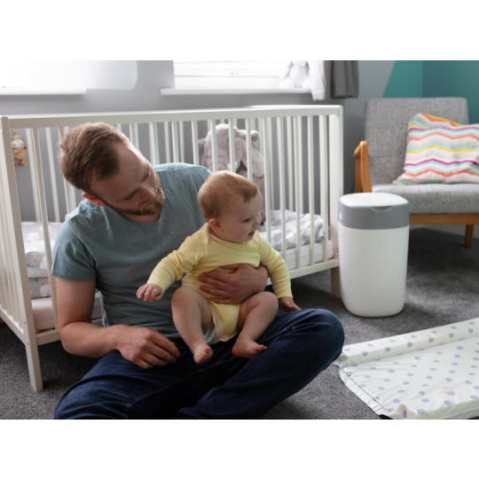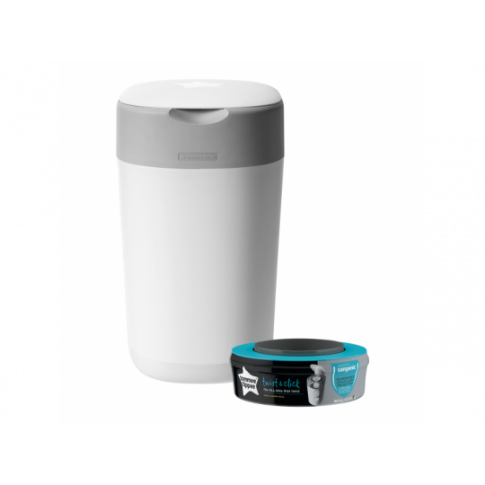 Nový, ekologičtější designový koš na jednorázové pleny Sangenic Twist & Click umožňuje bezdotykové zabalení použitých plen. Koš je vyroben z více než 98% z recyklovaného a recyklovatelného plastu. Výměnná kazeta, která je součástí koše, obsahuje 100% recyklovatelnou PE fólii GREENFILM™, vyrobenou z obnovitelného zdroje - cukrové třtiny. Nepropustná fólie GREENFILM™ ve výměnné kazetě obsahuje antibakteriální složku, která zničí 99% bakterií. Příjemná citronová vůně fólie přispívá k ochraně dětského pokoje před zápachem. Díky technologii Twist & Click se plena v koši zabalí do fólie a s pomocí pístu je zatlačena do koše. Plenu do fólie zabalíte otáčením mechanismu pod víkem, kliknutí indikuje úplné zabalení a pomáhá vám tak šetřit spotřebu fólie. Koš se stane nezbytnou součástí vaší domácnosti po celou dobu, kdy vaše dítě používá pleny. Nemusíte se obávat zápachu v místnosti, kde je koš umístěný, ani toho, že se do zkoumání použitých plen pustí vaše zvědavé batole či domácí mazlíček. Koš proto můžete mít s klidným srdcem umístěný vedle přebalovacího pultu v dětském pokoji, aby byl během přebalování vždy po ruce. V případě, že je dítě nemocné, nemusíte mít obavy z šíření bakterií z použitých plen na ostatní členy rodiny. Špičkový design koše skvěle doplní váš moderní interiér. Kapacita jedné kazety je až 84 plen (vel. 5-9 kg), při spotřebě 3 plen denně tak jedna kazeta vydrží až jeden měsíc používání. Díky tomu, že koš pojme cca 30 plen, není potřeba jej často vynášet a ušetříte tak mnoho cest k popelnici. Koš obsahuje jednu výměnnou kazetu s fólií GREENFILM™. Náhradní výměnné kazety se prodávají samostatně. Rozměry koše bez víka: Š 28 cm x H 25 cm x V 36 cm