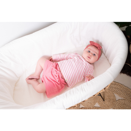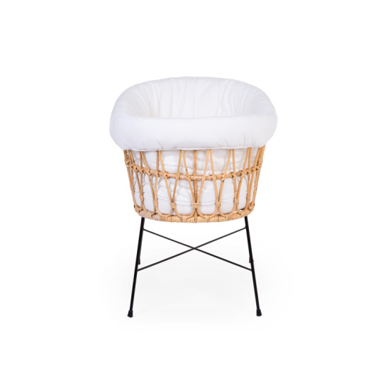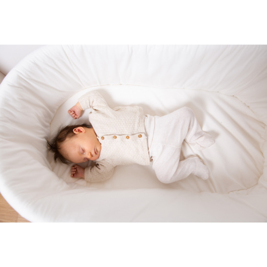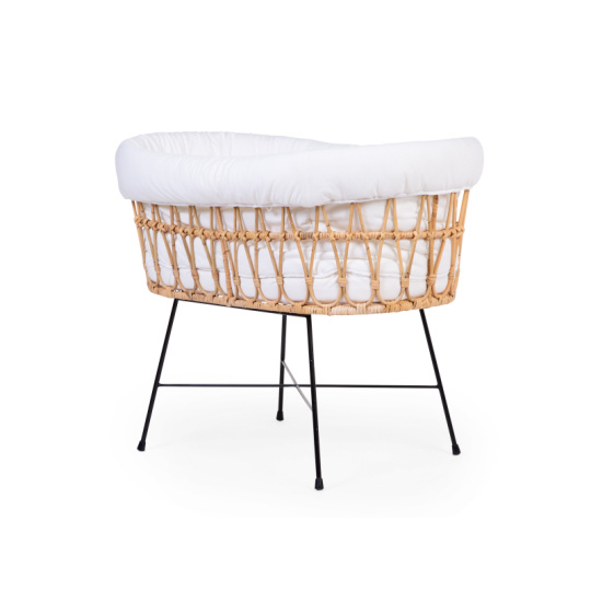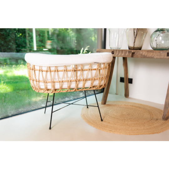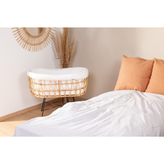 Košík na miminko v krásném přírodním designu je vyroben z ratanu. Jeho součástí je měkká matrace a textilní potah z měkké bavlny, který dotváří útulné a pohodlné prostředí pro miminko. Kovové nohy zaručují stabilitu košíku. Díky nízké hmotnosti se košík snadno přenáší, abyste mohli mít miminko vždy na dohled. Rozměry: 90 x 50 x 71 cm Materiál: ratan, matrace: 80% bavlna, 20% polyester, výplň: 100% polyester, potah: 100% bavlna. Potah je možno prát v pračce. Košík je vhodný pro miminko od narození do cca 6 měsíců (max. do 9 kg).